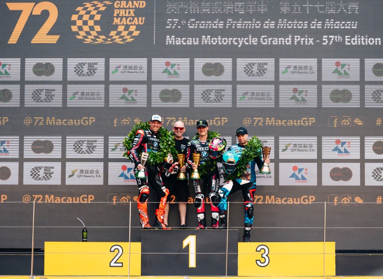 Οι αγωνιζόμενοι της BMW στους αγώνες ταχύτητας σε δρόμο αποδείχθηκαν για ακόμη μία φορά ανίκητοι στο θεαματικό Guia Circuit στο Macau. Στην 57η έκδοση του θρυλικού Macau Motorcycle Grand Prix, κατέκτησαν τις τρεις πρώτες θέσεις, εξασφαλίζοντας ένα βάθρο ολοκληρωτικά της BMW. Ο κυρίαρχος αναβάτης του αγωνιστικού Σαββατοκύριακου ήταν ο Davey Todd (GBR) με την #8 BMW M 1000 RR της Zeeco BMW Motorrad, αφού ήταν ταχύτερος τόσο στις Δοκιμές όσο και στις Κατατακτήριες, ο Βρετανός οδήγησε μέχρι τη νίκη μέσα από τα στενά «αστικά φαράγγια». Οι Peter Hickman (GBR) και Erno Kostamo (FIN / Racing for Inclusion by RVS) ολοκλήρωσαν την επιτυχία της BMW με την 2η και 3η θέση αντίστοιχα.