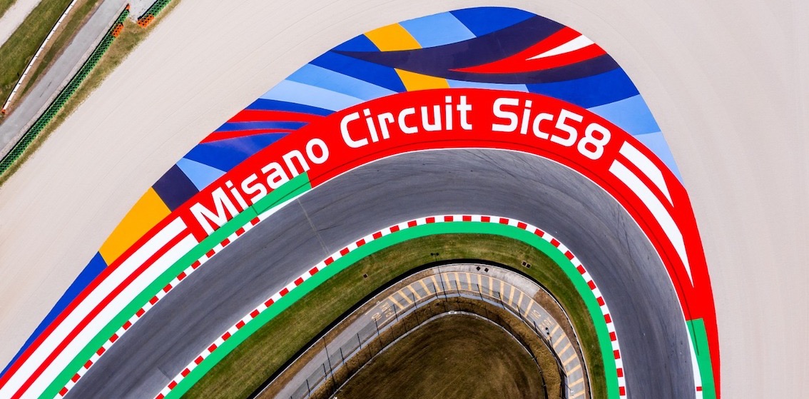 Αυτή είναι μια εξαιρετική επιτυχία για τη διαίσθηση, που αναπτύχθηκε μαζί με τον Aldo Drudi, για να συνθέσει τα χρώματα της “Riders' Land” (όπως λέγεται η περιοχή της Emilia-Romagna), στα πάνω από 20,000 τ.μ. των διαδρομών διαφυγής της πίστας που φέρει το όνομα Marco Simoncelli, σε σημείο να δώσει στην πίστα ταυτότητα και να τη συνδέσει με την επικράτεια.