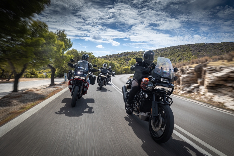 Στη συνέχεια οδηγήσαμε, σε μια σύντομη άλλα περιεκτική διαδρομή, τις Adventure Touring Pan America 1250 Special, Pan America 1250 ST και την πλούσια και μοναδική έκδοση CVO Pan America.