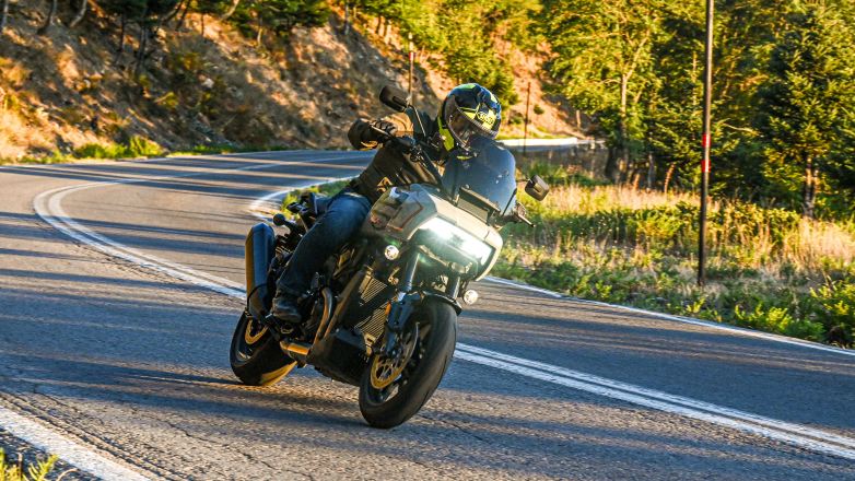 Η Pan America 1250 ST δεν περιορίζεται στο ταξίδι. Κινείται άνετα στην πόλη και δείχνει τον χαρακτήρα της σε επαρχιακούς δρόμους, αναβάσεις και διαδρομές με ωραίες στροφές, όπως αυτές που συναντά κανείς στο ελληνικό οδικό δίκτυο. Τα ελαστικά δρόμου, σε συνδυασμό με τους 17άρηδες τροχούς και τη γεωμετρία, προσφέρουν καλύτερο πάτημα και πιο άμεση αίσθηση στην άσφαλτο. Όταν ζεσταθούν, δίνουν τη σιγουριά που χρειάζεται για να πιέσεις περισσότερο.