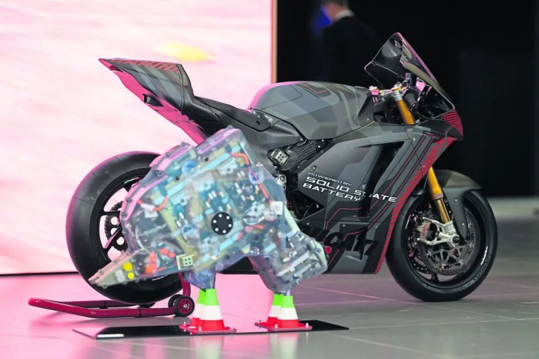 Εδώ είναι που οι μπαταρίες στερεάς κατάστασης γίνονται ιδιαίτερα ενδιαφέρουσες. Οι σύγχρονες ηλεκτρικές μοτοσυκλέτες διαμορφώνονται γύρω από τον όγκο της μπαταρίας. Μια μεγάλη, νόμιμη για τον δρόμο ηλεκτρική μοτοσυκλέτα μπορεί εύκολα να ξεπεράσει τα 230 κιλά. Στα μικρότερα μοντέλα, ο διαθέσιμος χώρος ανάμεσα στους τροχούς και κάτω από τον αναβάτη είναι οριακός για να χωρέσει αρκετά στοιχεία ώστε να προσφέρουν αξιοπρεπή αυτονομία. Τα πλαίσια πρέπει να παραμένουν στενά και εργονομικά, αλλά συχνά σχεδιάζονται γύρω από ένα βαρύ, ορθογώνιο μπλοκ της μπαταρίας για την αποθήκευση της ενέργειας.