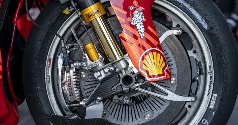 Οι αναβάτες MotoGP μπορούν να επιλέξουν δίσκους Brembo εμπρός φρένων με διαμέτρους 320 mm, 340 mm, και 355 mm.