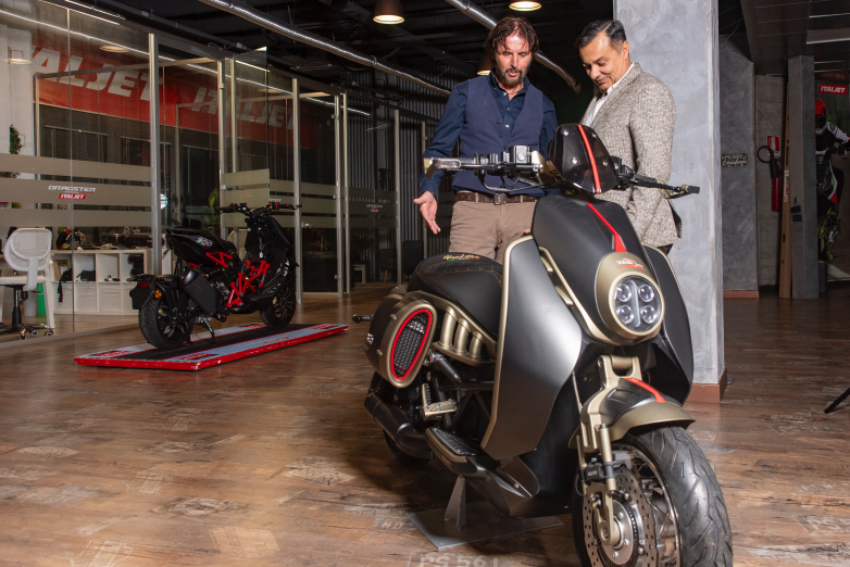 Βρεθήκαμε λοιπόν στα κεντρικά γραφεία της Italjet, κοντά στην Ίμολα, εκεί όπου ο Massimo, όπως και ο πατέρας του, δεν σχεδιάζει απλώς μοτοσυκλέτες. Σχεδιάζει ιστορία.