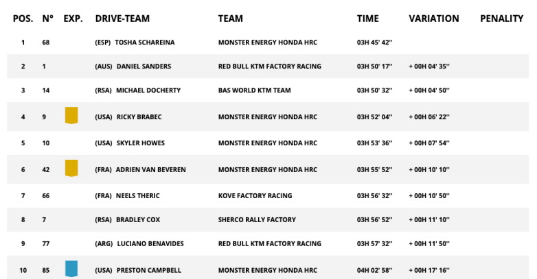 Ο Schareina, που παραμένει τέταρτος στη γενική κατάταξη αλλά έχει μειώσει τη διαφορά του από την κορυφή στα 15 λεπτά, μπορεί ακόμη να μετανιώνει για την ποινή των δέκα λεπτών που δέχτηκε στο πρώτο μαραθώνιο σκέλος. Χωρίς αυτήν, θα βρισκόταν πλέον «κλειδωμένος» στη μονομαχία με τον Daniel Sanders που όλοι περίμεναν. Ο υπερασπιστής του Tίτλου ήταν τελικά ο μεγάλος κερδισμένος της ημέρας, καθώς η σύγχυση που μοιράστηκε με τον ομόσταυλό του Luciano Benavides είχε ως αποτέλεσμα να χάσει λιγότερο χρόνο.