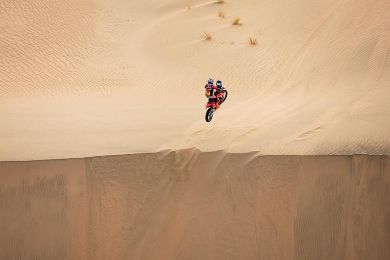 Άλλωστε, είναι κι αυτός άνθρωπος. Ο Daniel Sanders ξεκίνησε τη σεζόν του 2025 με την κατάκτηση του Dakar και την ολοκλήρωσε με τον Παγκόσμιο Τίτλο. Η απόλυτα κυριαρχική του παρουσία είχε δημιουργήσει τον φόβο ότι ο Αυστραλός και η KTM του θα ισοπέδωναν τον ανταγωνισμό από την εκκίνηση μέχρι και τον τερματισμό στο Yanbu. Πράγματι, το μεγάλο φαβορί για την υπεράσπιση του Τίτλου του, ακολουθούσε πιστά το πλάνο του και ξύπνησε σήμερα το πρωί έχοντας προβάδισμα άνω των 6 λεπτών από τον Ricky Brabec στην κορυφή της Γενικής Κατάταξης. Παρά τις οδηγικές του ικανότητες, τη σωματική αντοχή και την αποδεδειγμένη του δεινότητα στην πλοήγηση σε υψηλές ταχύτητες, όλα κατέρρευσαν όταν είχε πτώση και τραυμάτισε τον αριστερό του ώμο 138 χιλιόμετρα μετά την εκκίνηση της Ειδικής. Ο «Chucky» συνέχισε μέχρι τον τερματισμό, όμως έχασε σχεδόν μισή ώρα.