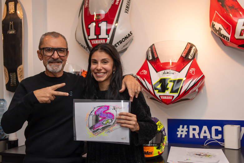 «Αδύνατο… αδύνατο!» Αυτή είναι η ζωή του εδώ και καιρό, δεν μπορεί να σταματήσει το πάθος του για κανένα λόγο. «Μπορεί να σταματήσει κάποιος μόνο αν δεν αγαπά αυτό που κάνει», προσθέτει. Αν σταμάταγε ο Drudi, ποιος θα έκανε το επόμενο σχέδιο για τα ρούχα της Ducati, ή το επόμενο κράνος του Franky Morbidelli; Ποιος θα τον πλήρωνε για τη χαρά που νιώθει όταν βλέπει το κράνος που δημιούργησε στη σχάρα εκκίνησης; Αν η συνεργασία του επιτρέπει να ασχολείται με τον κόσμο που αγαπά, μόνο τότε ναι. Και το έχει κάνει ήδη, ας πούμε με τα παπούτσια της Nike.