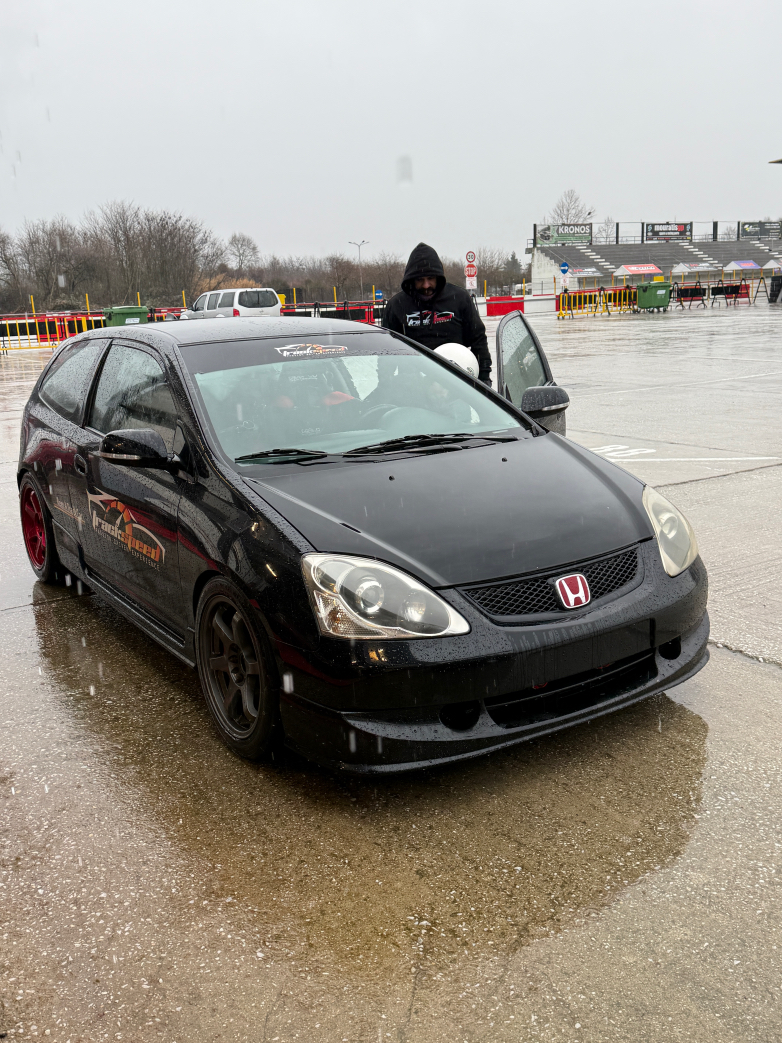 Βέβαια, ο καιρός δεν σταμάτησε τα μέλη του MGP. Έτσι ο Δημήτρης Διατσίδης και η Στεφανία Παντελιδάκη οδήγησαν στη βρεγμένη πίστα με ένα Suzuki Swift και με ένα Honda Civic Type R.
