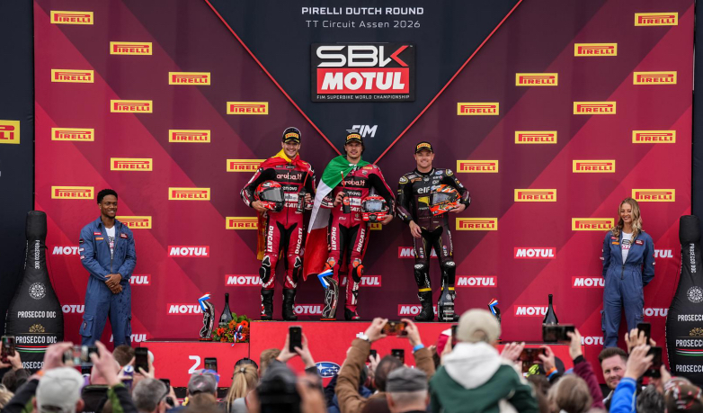 Η βροχή έκανε δύσκολες τις συνθήκες στην πίστα TT Circuit Assen και βοήθησε να δούμε συναρπαστικούς αγώνες σε όλες τις κατηγορίες του WorldSBK. Ο Nicolo Bulega (Aruba.it Racing – Ducati) συνέχισε το τέλειο ξεκίνημά του στη σεζόν με την έβδομη νίκη του, αλλά η μάχη για τη νίκη κρίθηκε μόνο στους τελευταίους γύρους.