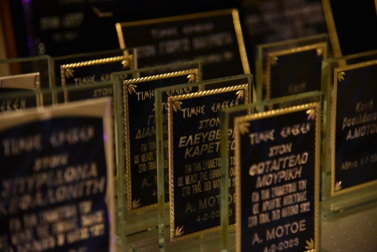 Πραγματοποιήθηκε το Σάββατο στην Παιανία η απονομή της Α.ΜΟΤ.Ο.Ε. για τα Πανελλήνια Πρωταθλήματα μοτοσυκλέτας του 2022, καθώς και η βράβευση Ελλήνων αθλητών μοτοσυκλέτας που συμμετείχαν σε διαγωνισμούς στο εξωτερικό. Επίσης από την πρόεδρο της Ομοσπονδίας, κ. Μαρία Τσεσμελή, δόθηκαν επίσης τιμητικές πλακέτες σε 3 Έλληνες θρύλους των αγώνων μοτοσυκλέτας, δηλαδή στον Κώστα Παπαγεωργίου (ταχύτητα), στον Γιάννη Μπαξεβάνη (motocross) και στον Αδάμο Πράσο (enduro). Την απονομή παρουσίαζε ο Δημήτρης Διατσίδης.