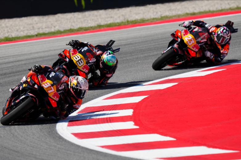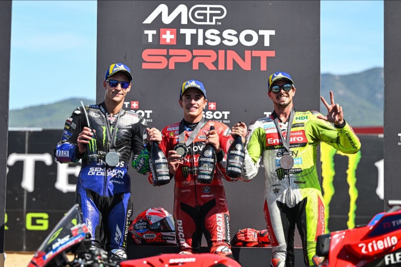 Η αήττητη πορεία του Marc Marquez (Ducati Lenovo Team) συνεχίζεται, αλλά το χρυσό μετάλλιο του Σαββάτου στο Monster Energy Grand Prix της Καταλονίας ήρθε σαν δώρο, καθώς ο Alex Marquez (BK8 Gresini Racing MotoGP) έπεσε ενώ οδηγούσε μπροστά τον Αγώνα με διαφορά άνω του ενός δευτερολέπτου. Ο Fabio Quartararo (Monster Energy Yamaha MotoGP) τερμάτισε στη 2η θέση, μόλις πάνω από ένα δευτερόλεπτο πίσω από τον Marc, ενώ ο Fabio Di Giannantonio (Pertamina Enduro VR46 Racing Team) πήρε σχετικά άνετα την 3η θέση, έχοντας ξεφύγει από μια εντυπωσιακή μάχη με τις KTM.