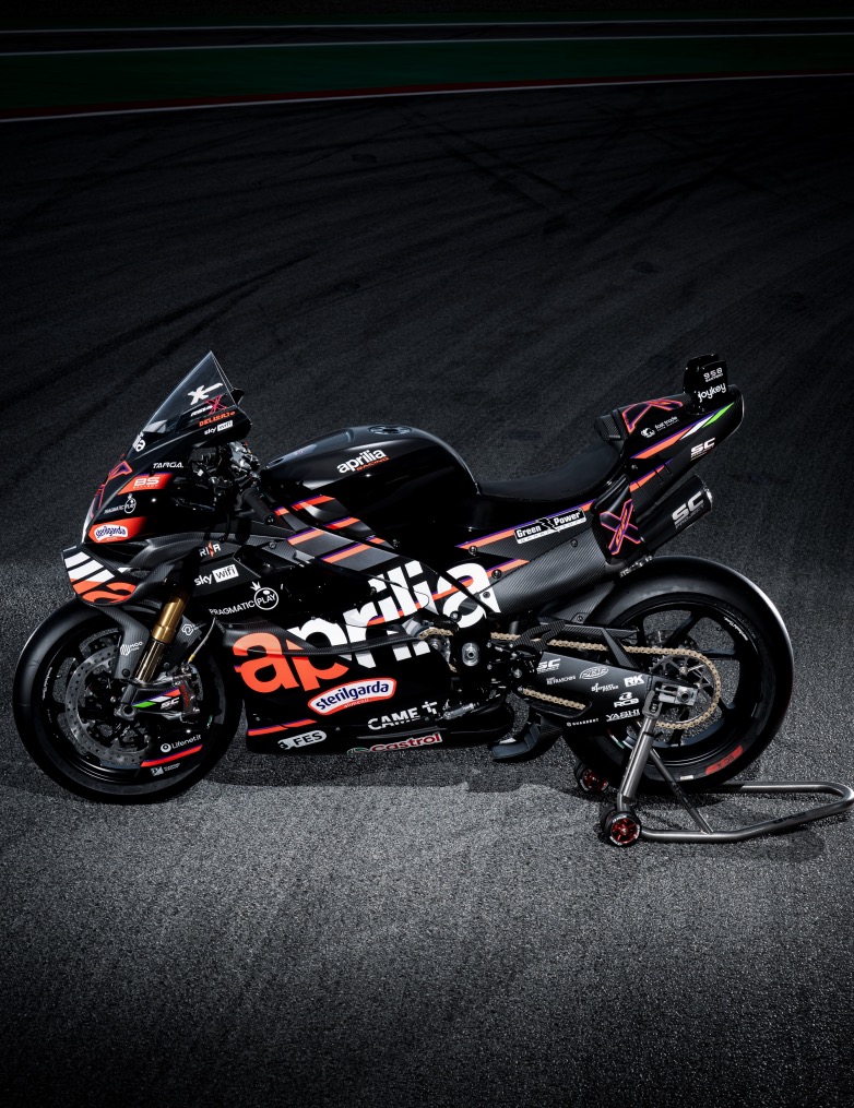 Η RSV4 X-GP, η μοτοσυκλέτα περιορισμένης παραγωγής από το Αγωνιστικό Τμήμα του Noale με τα επίσημα χρώματα της ομάδας MotoGP, δημιουργήθηκε για να γιορτάσει τη 10η επέτειο από το ντεμπούτο της RS-GP στην κορυφαία κατηγορία. Είναι η πρώτη εργοστασιακή μοτοσυκλέτα παραγωγής στον κόσμο που διαθέτει πτερύγια στα πλαϊνά και την ουρά – αεροδυναμικές λύσεις που συναντώνται μόνο στο πρωτότυπο RS-GP που αγωνίζεται στο Παγκόσμιο Πρωτάθλημα MotoGP. Η απόλυτη έκφραση της τεχνολογίας που αναπτύχθηκε στο Noale, η RSV4 X-GP διαθέτει επίσης το ολοκαίνουργιο δομικό υποπλαίσιο από ανθρακονήματα και είναι η ισχυρότερη RSV4 που έχει κατασκευαστεί ποτέ, με 238 ίππους και βάρος μόλις 165 κιλά, προσφέροντας αναλογία βάρους/ισχύος που αποδίδει μια πρωτοφανή εμπειρία οδήγησης.