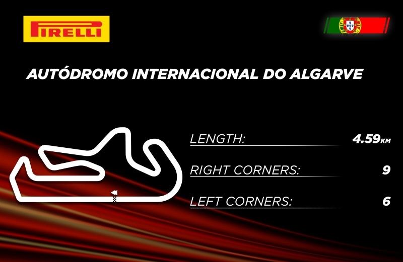 • Η πίστα Autodromo Internacional do Algarve φιλοξενεί το Πορτογαλικό Grand Prix για έκτη φορά μετά το ντεμπούτο του στο ημερολόγιο του MotoGP το 2020. Εκτός από την πρώτη χρονιά, σε όλες τις άλλες εκδόσεις το GP διεξήχθη στις αρχές της χρονιάς. Η πίστα είναι γνωστή για τους κυματισμούς (σαμαράκια), τις γρήγορες στροφές και τυφλές στροφές με κλίση έως και 12% στην κατηφόρα και 6% στην ανηφόρα. Ο συνδυασμός μεγάλων και γρήγορων στροφών, όπως η τελευταία δεξιά στροφή, δημιουργεί υψηλά πλευρικά και διαμήκη φορτία στα ελαστικά και το απότομο φρενάρισμα στην κατηφόρα επηρεάζει ιδιαίτερα τα μπροστινά ελαστικά.