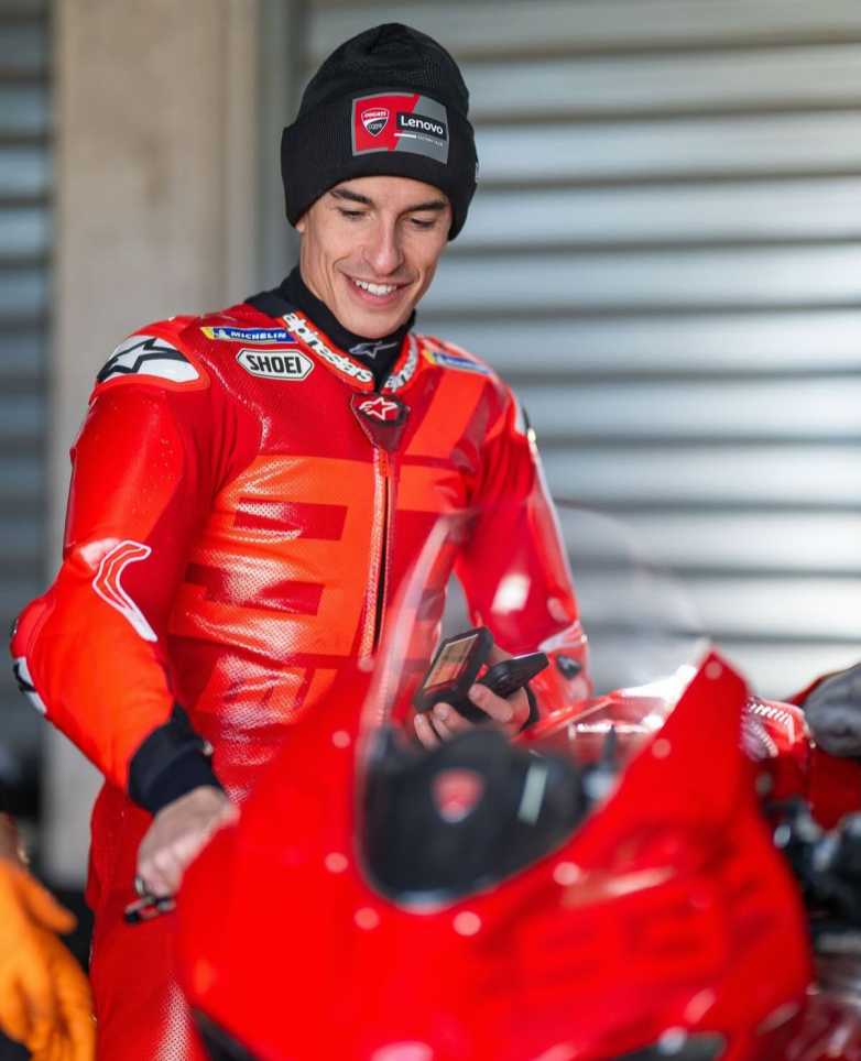 Τις ημέρες αυτές, ο Marc χρησιμοποίησε δύο εξαιρετικές Panigale μοτοσυκλέτες: την V2 MM93, που παρουσιάστηκε τον περασμένο Νοέμβριο, με την προσωπική του παραμετροποίηση, και τη νέα V4 Márquez 2025 World Champion Replica, τη συλλεκτική μοτοσυκλέτα που γιορτάζει τον Τίτλο του 2025.