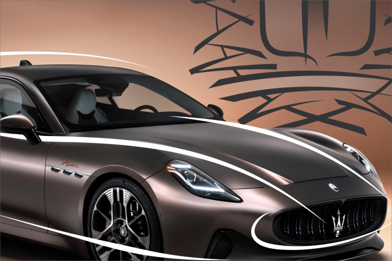 Η Maserati του ζήτησει να σχεδιάσει το πόστερ μιας εκδήλωσης και με έναν απλό αλλά ευφυή τρόπο τόνισε τις δυναμικές γραμμές και έδωσε "κίνηση" στην εικόνα