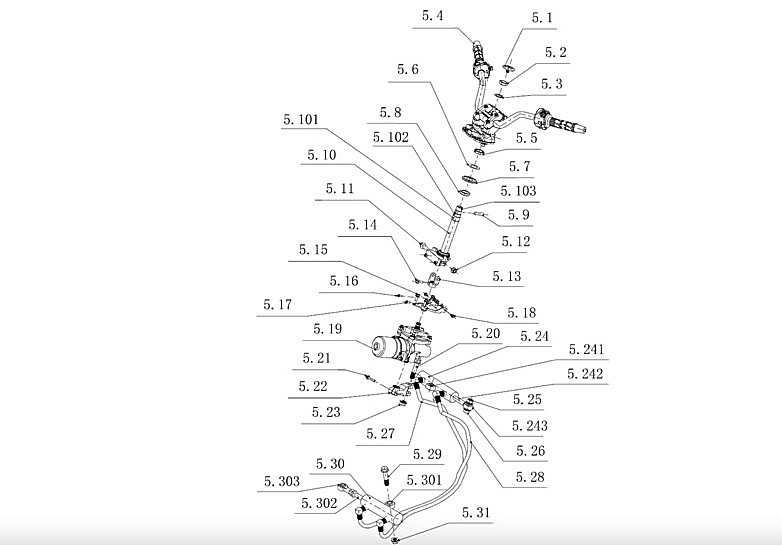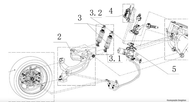 Στην αίτηση διπλώματος ευρεσιτεχνίας, η Zongshen περιγράφει λεπτομερώς την υποβοηθούμενη διεύθυνση της μοτοσυκλέτας: κάτω από το τιμόνι τοποθετούνται δύο έμβολα, πιθανότατα με αισθητήρες που μεταφέρουν τις εντολές στροφής προς τα αριστερά ή δεξιά στο ηλεκτροϋδραυλικό σύστημα. Κεντρικό και ιδιαίτερα σημαντικό στοιχείο της υποβοηθούμενης διεύθυνσης της Zongshen είναι η ηλεκτροϋδραυλική μονάδα αντλίας. Από εκεί ξεκινούν δύο υδραυλικές γραμμές που κατεβαίνουν προς τον εμπρός τροχό, όπου ένας εμφανής κύλινδρος ενεργοποίησης μετατρέπει απευθείας τις επιθυμητές κινήσεις διεύθυνσης στην πλήμνη του τροχού.