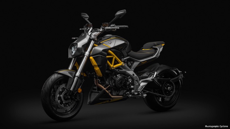 Το σύνθετο πλαίσιο από χαλύβδινο χωροδικτύωμα και αλουμινένια στοιχεία που απεικονίζεται στην πατέντα της Zongshen αντιστοιχεί σε μεγάλο βαθμό – με εξαίρεση τις προσαρμογές που αφορούν τη διεύθυνση μέσω πλήμνης – σε εκείνο της Cyclone RA 1000. Αυτή η γυμνή μοτοσυκλέτα, μαζί με τον V2 κινητήρα της, βασίζεται τεχνικά στη συνεργασία με την Piaggio και προέρχεται από την Aprilia Shiver 900. Στο πίσω μέρος, η Cyclone RA 1000 διαθέτει ήδη μονόμπρατσο ψαλίδι και θα μπορούσε να ακολουθήσει μια νέα έκδοση και με μονόμπρατσο ψαλίδι εμπρός.
