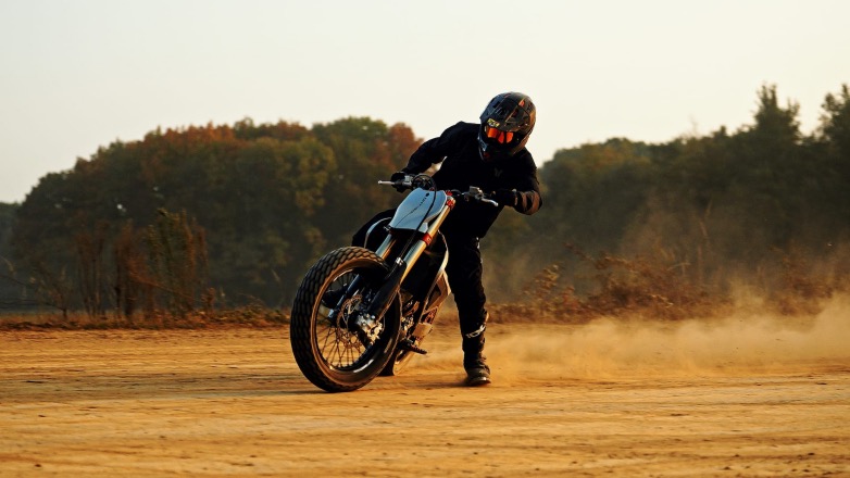 Όσον αφορά το πλαίσιο, είναι συμπαγές, με χωροταξία όσο το δυνατόν πιο κοντά στο κέντρο της μοτοσυκλέτας για να διατηρείται το βάρος συγκεντρωμένο σε μικρή απόσταση από το κέντρο μάζας, ώστε οι αλλαγές κατεύθυνσης να γίνονται πιο γρήγορα. Δεν υπάρχει μπροστινό φρένο, όπως απαιτούν οι κανονισμοί του flat track, και οι αναρτήσεις είναι ρυθμισμένες ειδικά για οβάλ χωμάτινες πίστες, όχι για άλματα ή διαδρομές εκτός δρόμου. Τα πλαστικά μέρη είναι ελάχιστα και καθαρά λειτουργικά, σχεδιασμένα για αντοχή και ελευθερία κινήσεων. Η ρυθμισιμότητα υπάρχει παντού εκεί που μετράει πραγματικά, επιτρέποντας στις ομάδες να κυνηγούν την αίσθηση και όχι να παλεύουν με περιορισμούς.