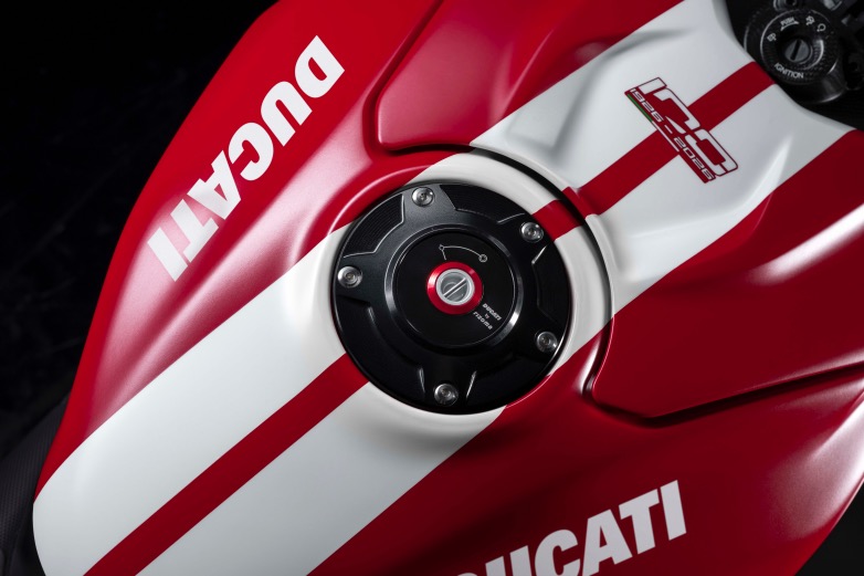 Ο εξοπλισμός περιλαμβάνει και racing kit για χρήση στην πίστα, επιβεβαιώνοντας τη μοναδικότητά της. Περιλαμβάνει εξάτμιση Akrapovič με λογισμικό DAVC Race Pro, ειδικό κάτω φέρινγκ, ανοιχτό καπάκι συμπλέκτη και προστατευτικά από carbon.