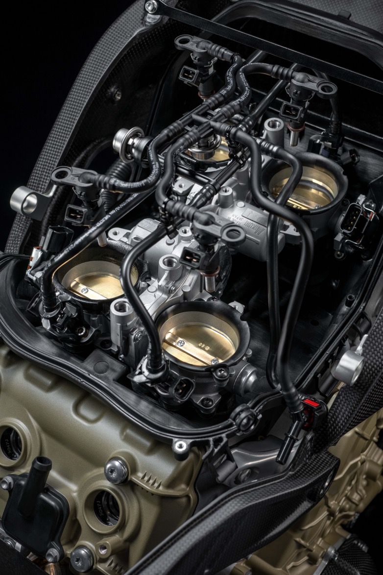 Ο κινητήρας είναι 3.6 κιλά ελαφρύτερος από εκείνον της Panigale V4, χάρη στη χρήση τιτανίου, ελαφρύτερων βιδών και επανασχεδιασμένων εξαρτημάτων. Τα έμβολα δύο δακτυλίων χρησιμοποιούν τεχνολογία “box-in-box” και ενισχυμένο πείρο για να αντέχουν την αυξημένη ισχύ.