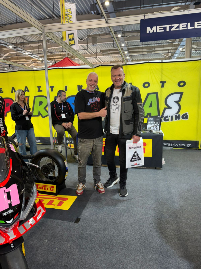 Πέρα από αυτές τις ωραίες στιγμές, ο πατέρας του Νίκος Περιστεράς ήταν εκεί για να δίνει τις απαραίτητες πληροφορίες για όσους θέλουν να αλλάξουν τα ελαστικά της μοτοσυκλέτας τους. Ακόμη και για τις πιέσεις που πρέπει να χρησιμοποιούν σε καθημερινή χρήση ή όταν μπαίνουν σε μια πίστα για να κάνουν ένα track day.